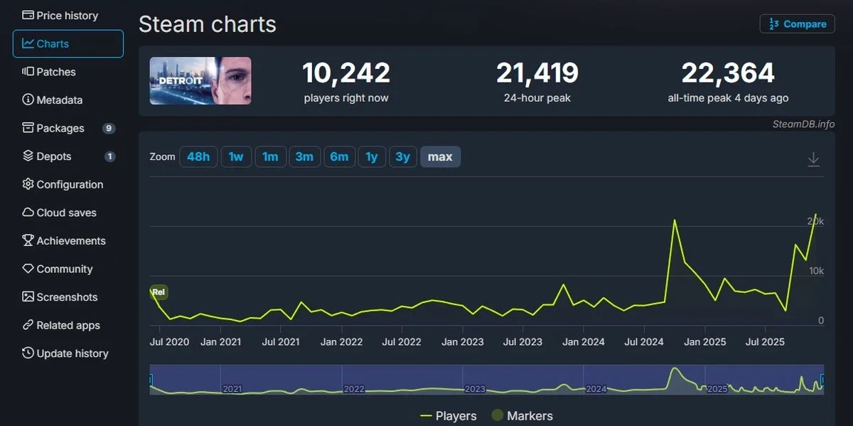 Главная » Статьи » Detroit: Become Human обновила рекорд по пиковому онлайну в Steam благодаря распродаже