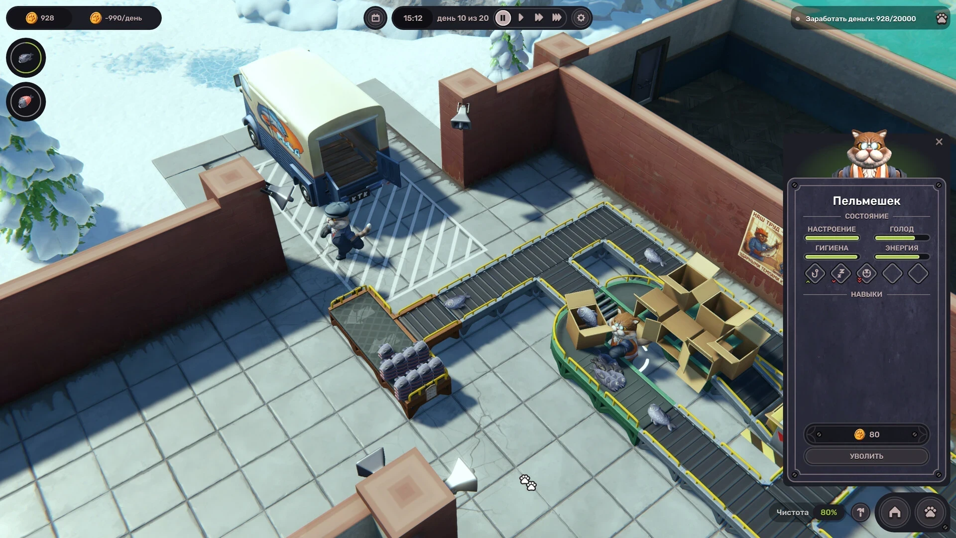 Вот поэтому заводу нужен грамотный управляющий. Им становится игрок. Необходимо следить за очаровательными подчинёнными, удовлетворять их потребности и, при необходимости, брать за шкирку. А также строить и улучшать производство.
