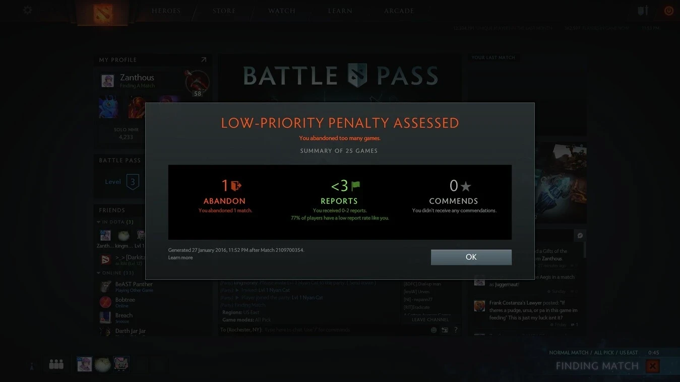 Даже профессиональные игроки периодически оказываются в этой системе. Причиной могут стать как технические проблемы и вылеты из игры, так и жалобы от других игроков.